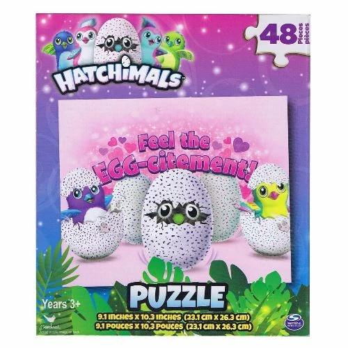 Jigsaw puzzle brings fun and excitement to your child Puzzles teach fine motorskills, problem solving and imagination. Watch the Hatchimals develop before your eyes! Assemble this 48-piece jigsaw puzzle and see the transformations.
