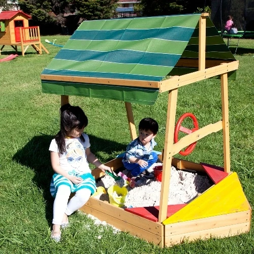 This sandpit comes with a nifty UV-protected canopy to keep your kids cool and in the shade during play.