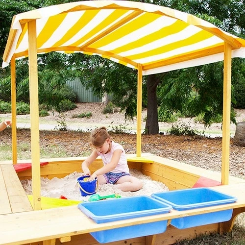 This sandpit comes with a nifty UV-protected canopy to keep your kids cool and in the shade during play.