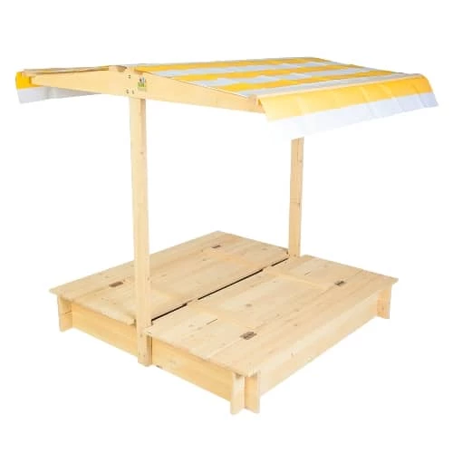 This sandpit comes with a nifty UV-protected canopy to keep your kids cool and in the shade during play.