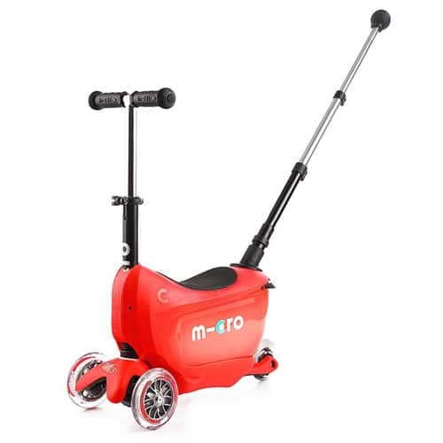 The Mini2Go Deluxe is an award winning toddler ride-on that converts to a scooter. It features a retractable parents handlebar and converts to a full size Mini Micro Deluxe to provide your child with many years of fun.