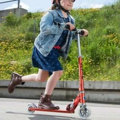 The steel one-piece bar combined with the aluminium fixed deck are designed to absorb the impact of beginner stunts and tricks and built to last. Not to mention the Micro griptape ensures awesome friction to keep feet fastened to the deck.