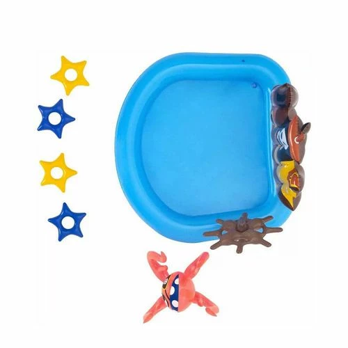 Travel on a voyage out to sea, search for hidden booty and batten down the hatches in this H2OGO! Ships Ahoy Play Center. Fill the pool up with water, and watch as your child imagination runs wild! The moveable ship wheel allows your little Captain to steer their ship out of trouble or incoming storms – all while splashing the day away in your backyard. The play center also includes an octopus and 4 inflatable rings, providing a fun ring toss game for your little one to play, all while helping them develop motor skills and hand-eye coordination. This play center is simple to set up and does not require the use of any tools. It easily inflates and deflates, and it has a drain valve to quickly get rid of the water when you are ready to put it away. Both you and your kids will feel like you have stumbled upon hidden treasure with the H2OGO! Ships Ahoy Play Center!