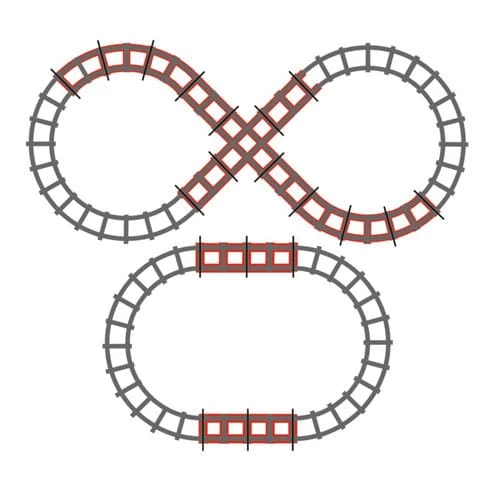 Rails Kit for Santa Fe train. 4 straight rail tracks, 6 curved and 1 crossing in addition to those supplied enable you to create the figure 8. High quality.