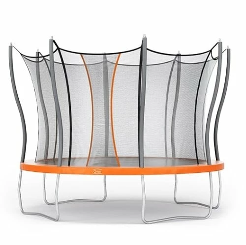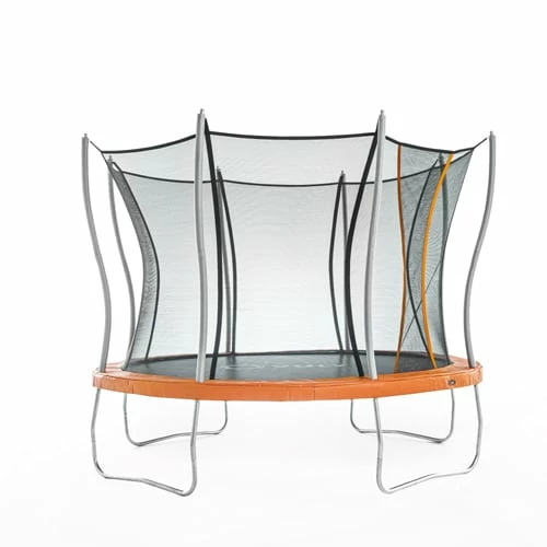 Fall on only the jump mat or net – never the metal coils, frame or poles – thanks to: Springs that are totally external to the enclosure; Poles and netting that arch in opposite directions; An entry that self-closes every time, with no fiddly zips or Velcro.